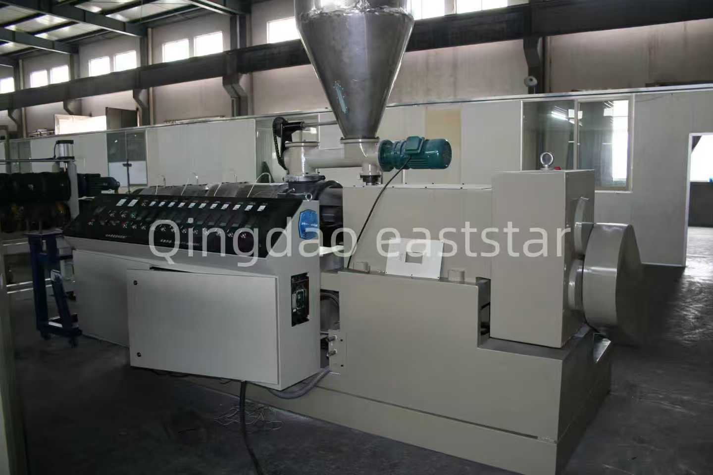 Peralatan inti dariLini produksi lembaran bergelombang ekstrusi bersama PC+ASAmencakup dua ekstruder sekrup tunggal, SJ-120 dan SJ-40, yang masing-masing digunakan untuk mengekstrusi lapisan PC dan lapisan ASA.