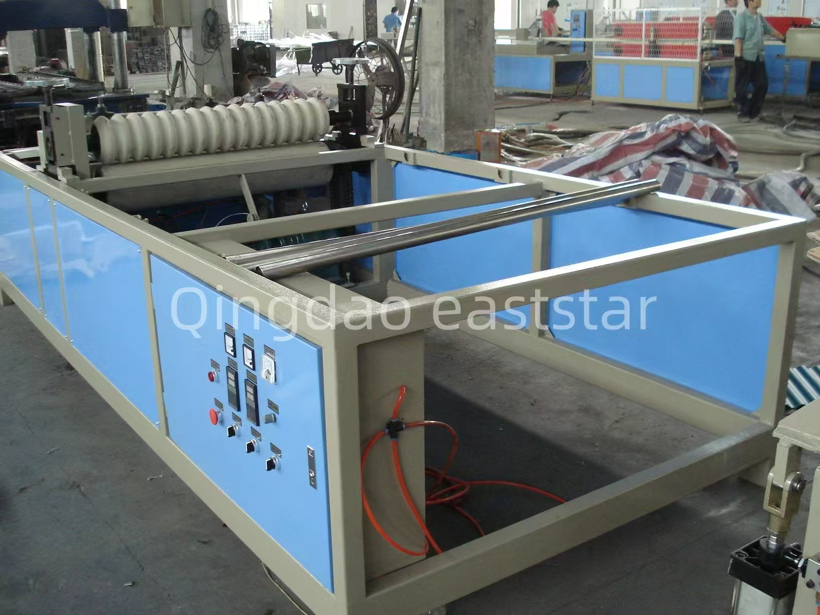 Sistem bantu dariLini produksi lembaran bergelombang ekstrusi bersama PC+ASAtermasuk cetakan pembentuk, mesin traksi, dan unit pemotongan.