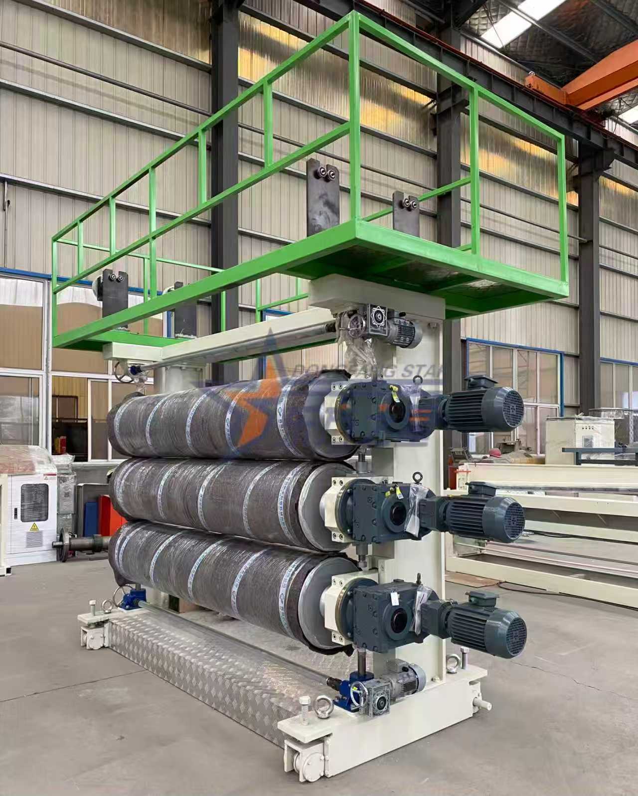 ItuLini produksi lembaran ABS/HIPSjuga mencakup sistem pengeringan terpusat, termasuk mixer kering dan pengering vakum, untuk melindungi bahan yang sensitif terhadap kelembapan seperti ABS,HIPS. Lembaran tersebut dikeringkan secara menyeluruh sebelum dibuang. Tiga rol memastikan kontrol ketebalan dan perawatan permukaan yang presisi. Setelah ditekan, lembaran tersebut didinginkan pada kerangka pendingin sepanjang 8 meter dengan 26 rol baja tahan karat dan akhirnya diangkut dengan mesin traksi. KeseluruhanPeralatan lembaran ABS/HIPStmenggunakan komponen kontrol yang terkenal secara internasional, Misalnya, sistem kontrol suhu menggunakan pengontrol suhu cerdas Omron dari Jepang, peralatan listrik bertegangan rendah menggunakan kontaktor AC Siemens dan sebagainya.