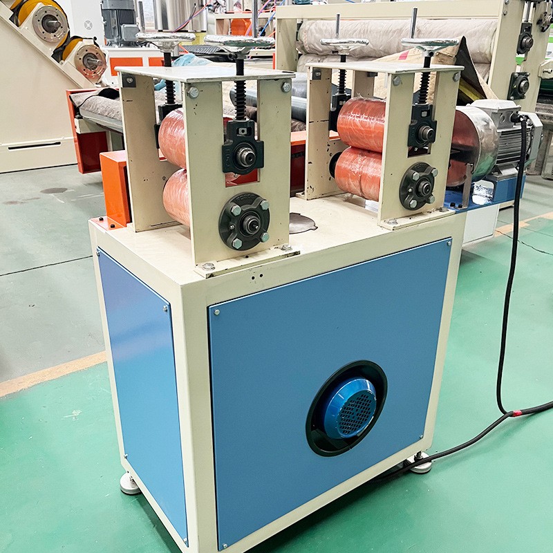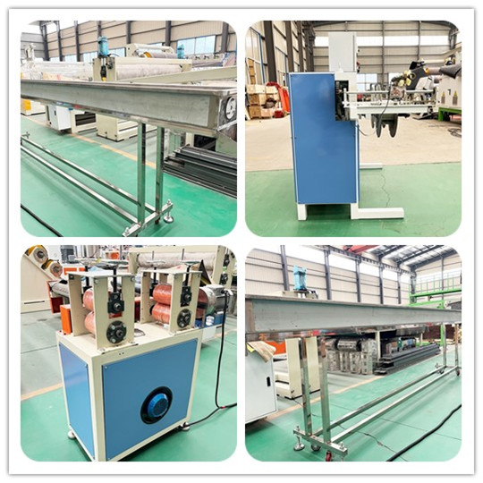 Mesin Ekstrusi Strip Tepi Kantong PE mencakup kompresor sekrup tunggal - cetakan kepala mesin - gudang pembentuk vakum - traktor traksi - belitan