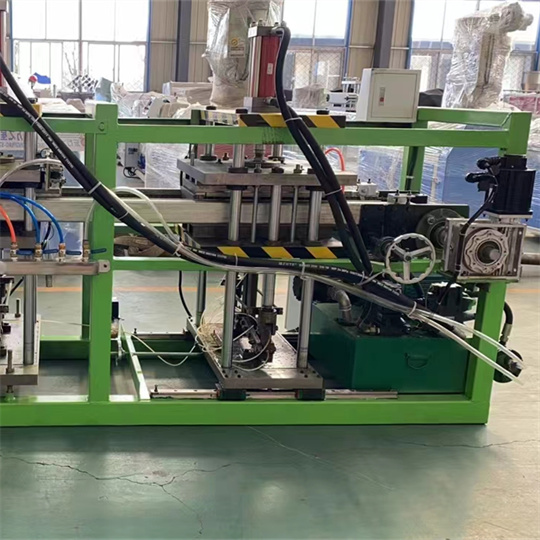 Parameter teknis mesin pembuat baki penyemaian PS PET Spesifikasi lebar lembaran bekas: 300~320mm, tebal: 0,8~2mm. Mesin Pembuat Baki Pembibitan PET PS Area pembentukan (maksimum): 400*600 mm, efisiensi kerja 15~20 kali/menit. Daya yang digunakan: tiga fasa empat kawat 380 volt, daya maksimum 25KW Tekanan hidrolik: 100T Ukuran eksternal (mm) panjang, lebar dan tinggi) 3600mm*980mm*1500mm