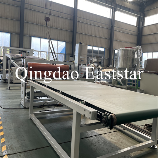braket, mesin traksi rol karet, mesin geser, dan perangkat ban berjalan. Peralatan ekstruder pelat anti selip PVC, lebar produk