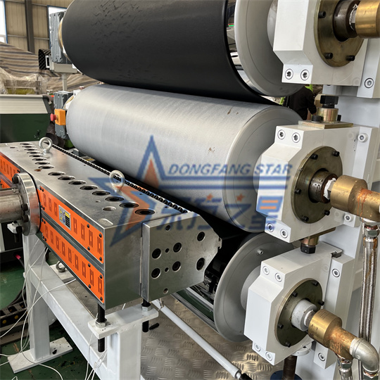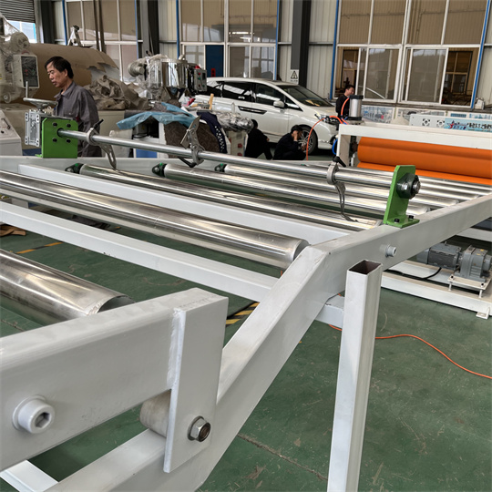 Peralatan Papan Anti-statis PVC: Peralatan ini terutama terdiri dari ekstruder sekrup tunggal 120, kalender tiga rol, braket pendingin, mesin traksi rol karet, mesin geser, dan