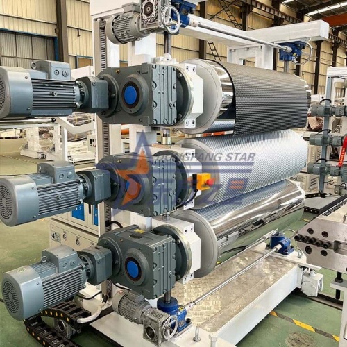Lini Produksi Khusus Matras Anti Selip TPE SJ120/33 adalah peralatan produksi profesional yang dirancang khusus untuk bahan matras termoplastik elastomer (TPE). Ini mengadopsi ekstruder berdaya tinggi dengan rasio aspek 33:1, cetakan tipe gantungan baju presisi, sistem kalender tiga gulungan cermin, dan perangkat pemotong otomatis. Ini secara efisien dapat menghasilkan tikar anti selip TPE berkualitas tinggi dengan lebar 600-1000mm dan ketebalan 1-6mm. Peralatan ini dioptimalkan untuk karakteristik material TPE, dengan kontrol suhu yang presisi, pengoperasian yang sederhana, dan dukungan untuk pergantian produksi yang cepat. Sangat cocok untuk produksi keset lantai otomotif, keset anti selip rumah, dan bahan keset komersial dalam skala besar. Dengan pengembalian investasi yang singkat dan kualitas produk yang stabil, ini merupakan pilihan ideal untuk memasuki pasar anyaman TPE.